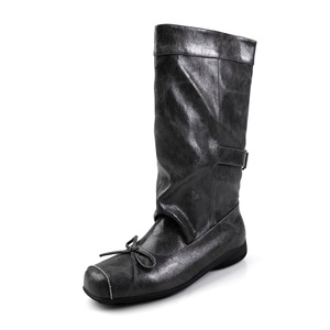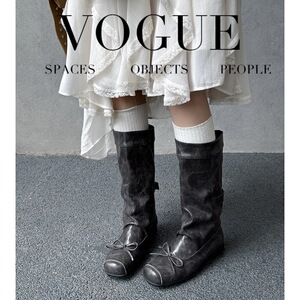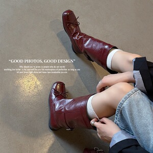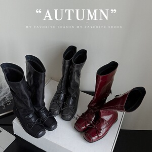 牛皮版~设计感大筒围圆头玛丽珍靴小众欧货今年流行宽松长筒靴女