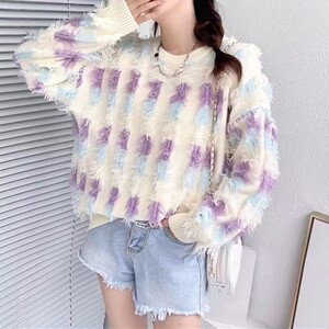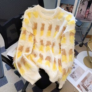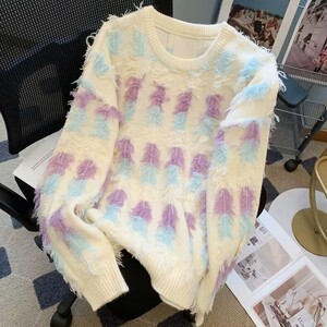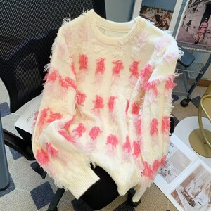扎染毛衣女套头秋冬宽松2025新款温柔风软糯小众短款针织衫上衣