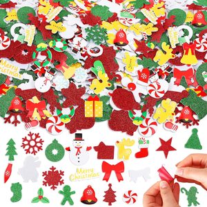 跨境闪光泡沫贴纸卡通圣诞节贴纸儿童装饰模切 金粉EVA泡棉贴雪人