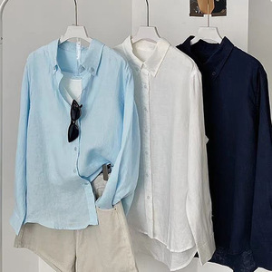 100リネン極薄オールドマネースタイルシャツレディースルーズミドル丈レイジースタイル夏の日焼け止め服空調シャツアウターウェア