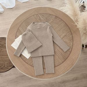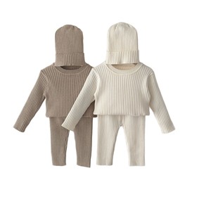 ins2025秋冬男女宝宝套装坑条打底针织上衣+针织裤子+帽子三件套