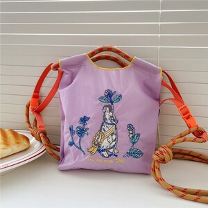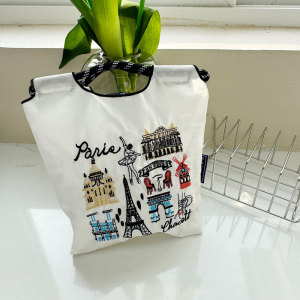 日系BallChain同款环保刺绣购物袋尼龙布花手提小众时尚购物包袋
