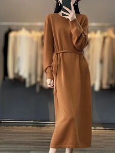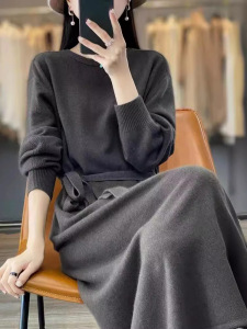 2025秋冬新款系带气质显瘦针织连衣裙女时尚洋气中长款内搭毛衣裙