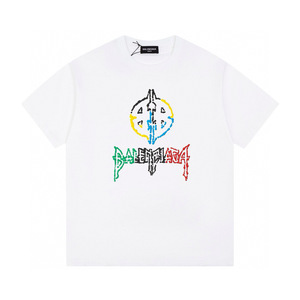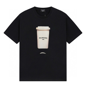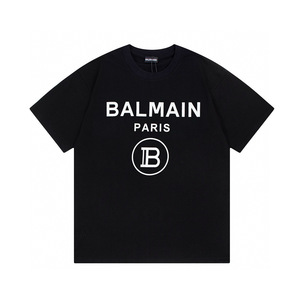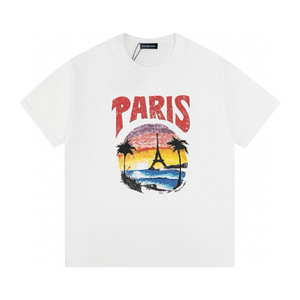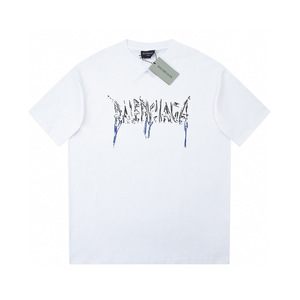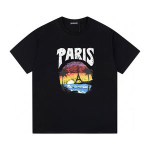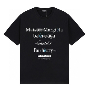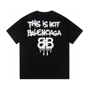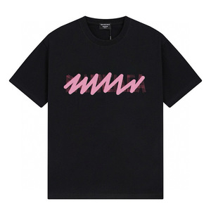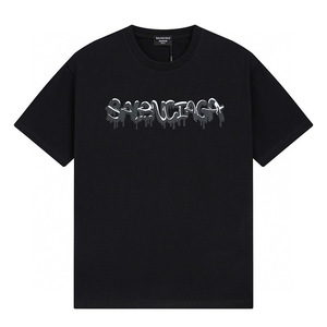 クロスボーダー 2025 夏の新スタイル 260 グラムコーマ綿二重糸金属テクスチャテーププリントロゴ男性と女性の T シャツトレンディ
