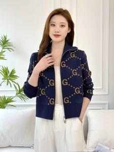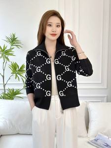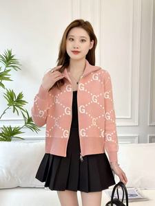2025春秋スタンドカラーフレグランスジッパーシャツ、ファッショナブルで多用途なショートジャカードニットカーディガン、西洋スタイルとハイエンド