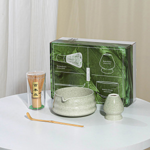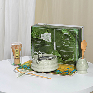 抹茶ティーセット インス風 和風 7点セット 百本立茶筌 陶器 ギフトボックス クロスボーダー 抹茶ボウル 注ぎ口付き