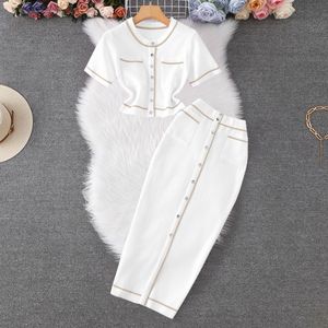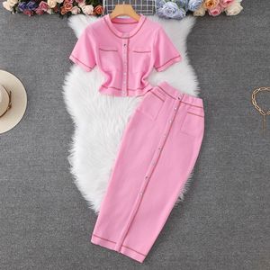ニットスーツとスカートの2点セット、高級ファッションポケットセータートップ、スリムスカート、痩身カバーセット