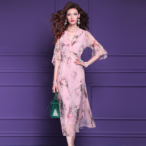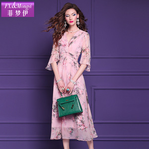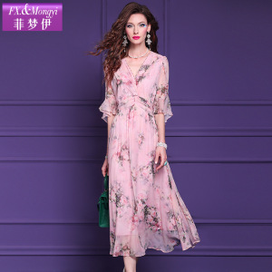 Feimengyi 100 マルベリーシルクプリントドレス女性の夏のフレンチデザインニッチシルクビーズロングスカート