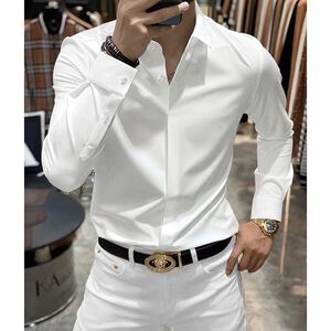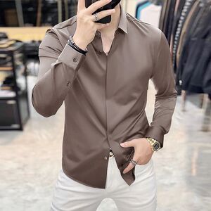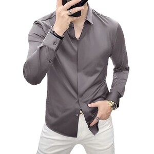 2025春季男士新款简约时尚潮流纽扣开衫商务长袖方领衬衣百搭衬衫