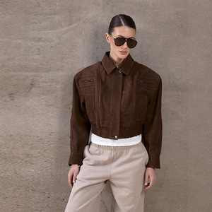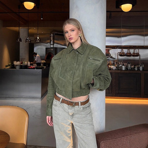 2025欧美跨境春秋新款女装休闲短款拉链夹克外套百搭翻领修身上衣
