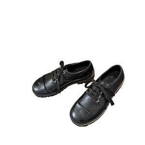 顶版25新款小香风乐福鞋女 双C小皮鞋厚底真皮英伦风粗跟格菱纹鞋
