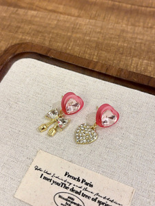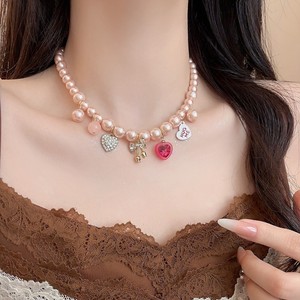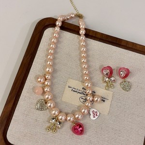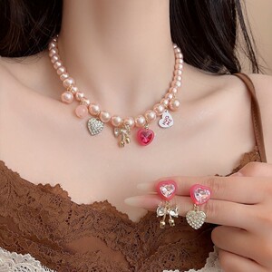 甜美风巴洛克珍珠项链爱心蝴蝶结吊坠气质锁骨链精致少女时尚耳环