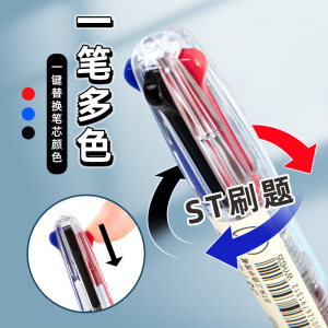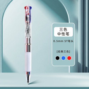三色合一中性笔彩色一体按动式签字圆珠记做笔记用手帐笔绘画速干