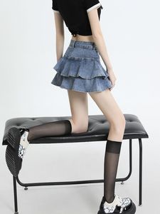 ホットガールデニムミニスカートレディース夏新作ハイウエスト痩身脚長Aラインフリルヒップハグスカート