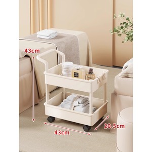 【奶油白】二层+挂钩*4+挂盒*2(多功能置物*滑轮移动)