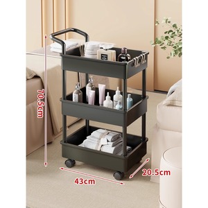 【雅致黑】三层+挂钩*4(多功能置物*滑轮移动)