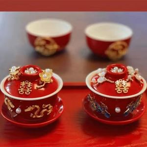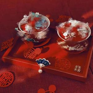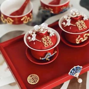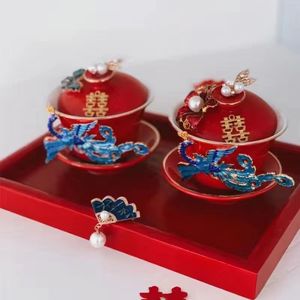 喜结连理敬茶杯婚庆用品陪嫁对杯diy手作装饰陶瓷盖婚庆用品大全