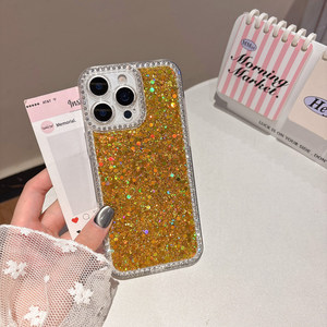 适用三星A35/A17手机壳A55女款S25ultra/S24/S23新款闪粉创意边钻