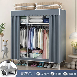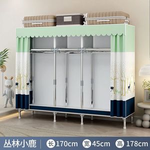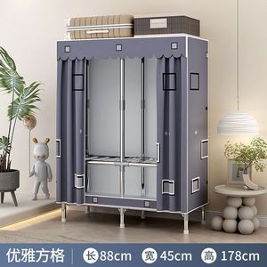山形寮ワードローブシンプルな家庭用寝室組み立て布ワードローブレンタルルームスチールフレーム厚いワードローブ棚