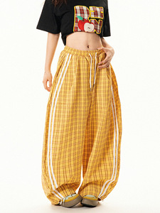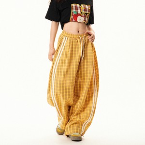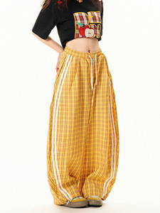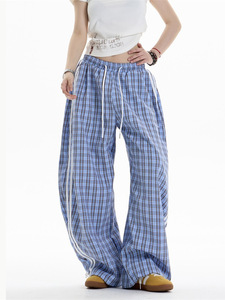 2025 夏の新チェック柄カジュアルパンツ夏の新しい怠惰なスタイルダンス痩身ルーズワイドレッグパンツ男性と女性のための