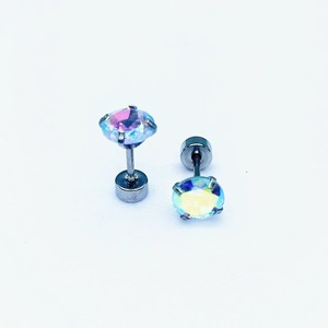 亚马逊跨境316钛钢圆饼耳钉彩色锆石耳骨钉养耳洞耳蜗钉直销水晶
