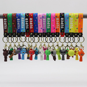 クロスボーダーリズムボックスキーホルダーゲームフィギュア人形装飾品ロープペンダント付き 3D ソフトプラスチックブラインドボックス人形卸売