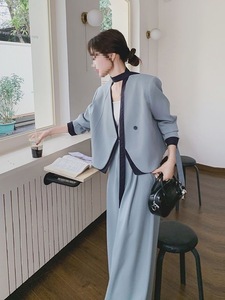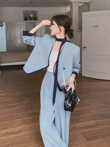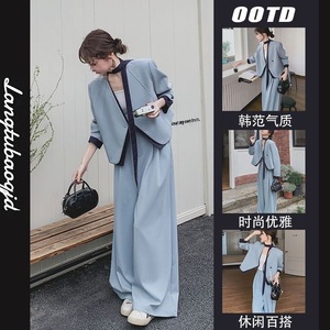 蓝色西装西裤两件套女春秋季漂亮新品感韩系休闲套装
