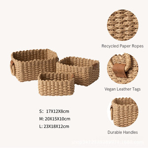 桌面收纳篮3件套纸绳编织桌面杂物收纳篮收纳筐置物架储物篮