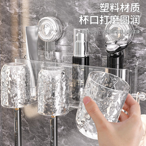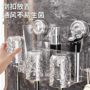 吸盤歯ブラシラック、パンチフリー、ハンドル付きバスルーム歯磨きカップ、マウスウォッシュカップラック、壁掛け識別カップ