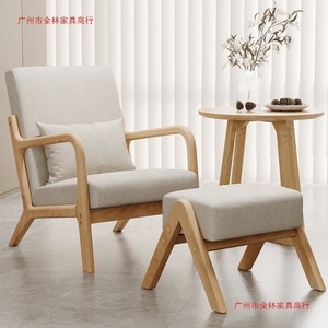 北欧单人沙发椅实木布艺沙发阳台小户型桌椅组合民宿休闲阳台懒人