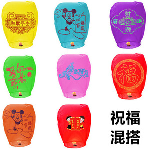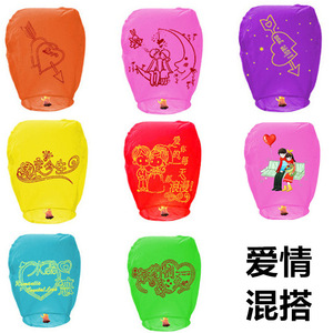 新しい四面カラープリント孔明ランタン 50 個 + 願いペン 3 本 + ワックスブロック
