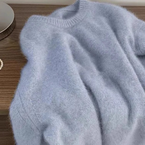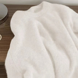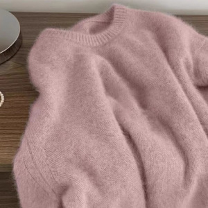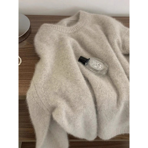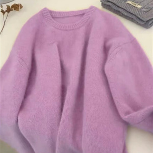 高級ソフトシンプルラウンドネックセーター無地プルオーバー冬怠惰なスタイルミルクふふルーズニットセーター