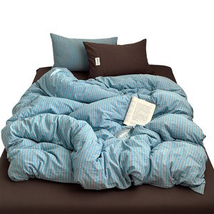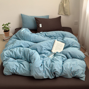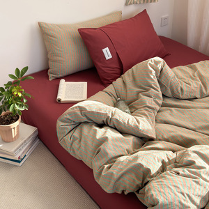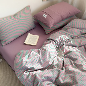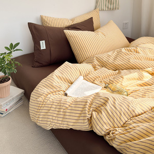 全棉色织水洗棉四件套床上用品日式无印厂家纯棉床笠良品批发供货