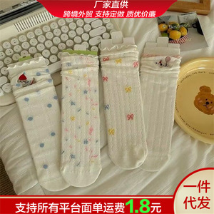 春と夏の漫画の子犬レース甘くてかわいいインパイルロングソックス女の子メッシュソックスカール女性のミッドカーフソックス