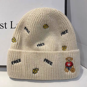 二重耳当て付きくまさん帽子、大きなつばで顔を覆う秋冬用ニット帽、男女兼用ベビー用、可愛い大きな目