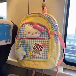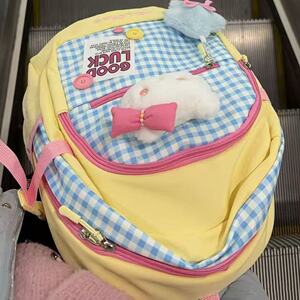 新款日系ins风格子双肩包可爱大容量轻便校园背包大学生百搭书包