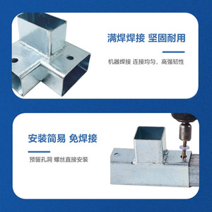 角管コネクタ、溶接不要のスナップ固定金具、直角二方三方向鉄管ガードレール、亜鉛メッキストレート