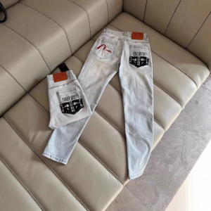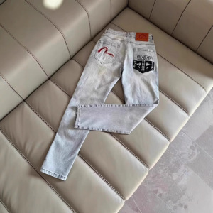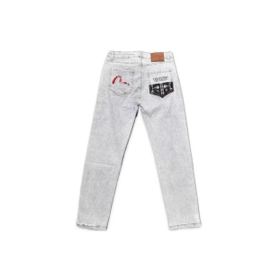 跨境严选牛仔裤网红福神男款潮流字母图案修身帅气直筒休闲长裤潮