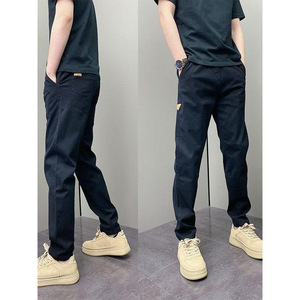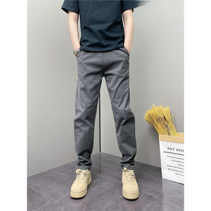 2025年春季男裤痞帅纯色修身小脚裤时尚简约百搭青年男士休闲裤子
