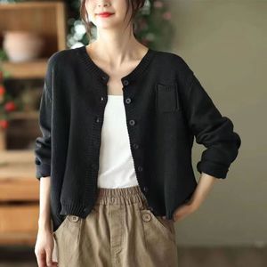 复古宽松女士开衫毛衣春秋季新款时尚洋气圆领单排扣长袖针织外套