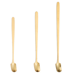 不锈钢勺子方头勺家用长柄搅拌咖啡茶糖玻璃杯勺马克杯配方头勺子