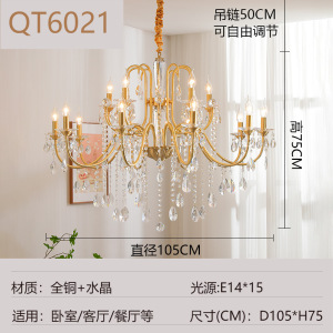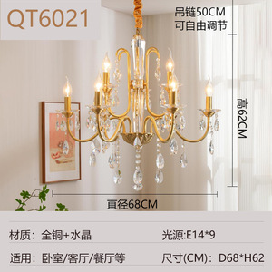 全銅シャンデリア、ハイエンド、ライトラグジュアリー、リビングルームプロジェクト、フレンチスタイル、温かみのあるアメリカンスタイルのヴィラレストラン、中古ハイエンドクリスタルランプ
