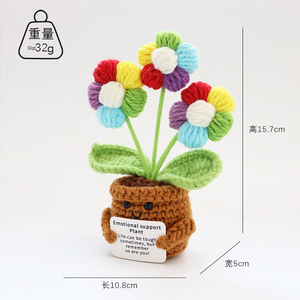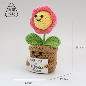 国境を越えた人気の手作りかぎ針編みウールパフフラワー鉢植えひまわり多肉植物ウール人形かぎ針編み人形完成品