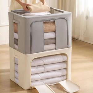 现货牛津布收纳箱钢架箱衣服整理箱棉被储物箱可折叠衣柜布艺收纳