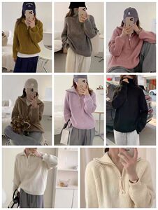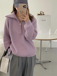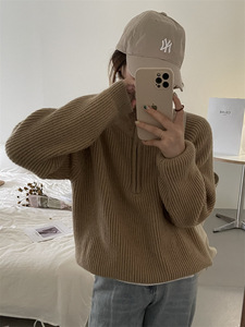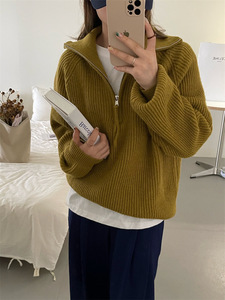 跨境大码慵懒风翻领毛衣女2025秋冬高领拉链套头百搭搭针织衫外套