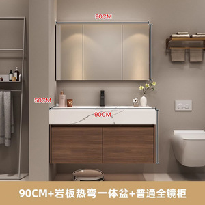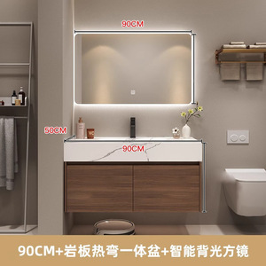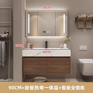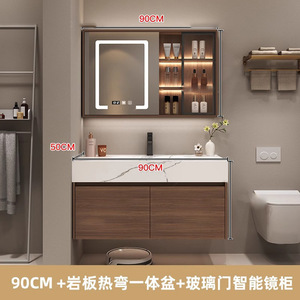 90cm岩板热弯一体盆+玻璃智能镜柜