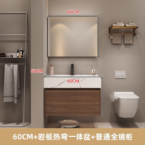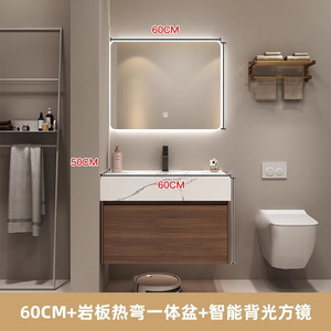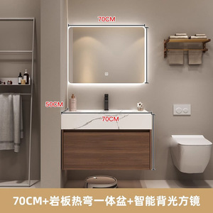 70cm岩板热弯一体盆+玻璃智能镜柜