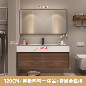 120cm岩板热弯一体盆+玻璃智能镜柜