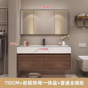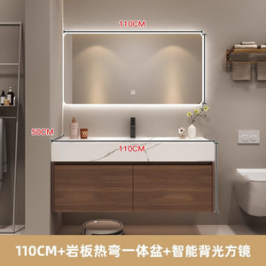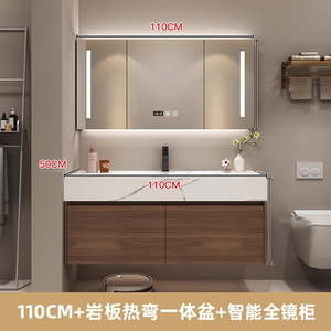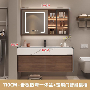 110cm岩板热弯一体盆+玻璃智能镜柜