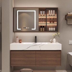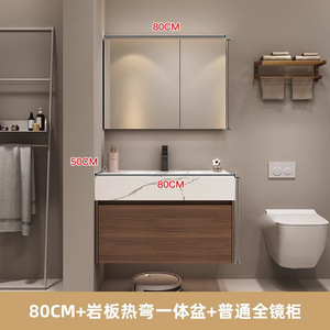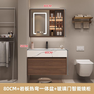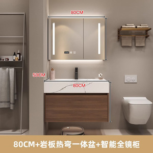 80cm岩板热弯一体盆+玻璃智能镜柜